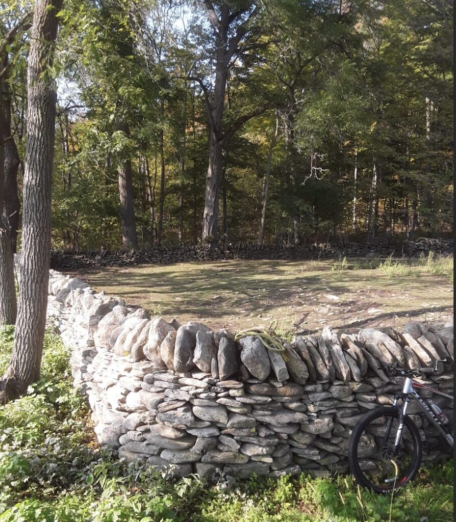 Dry stone fences along the property and a stone retaining wall are also designated.