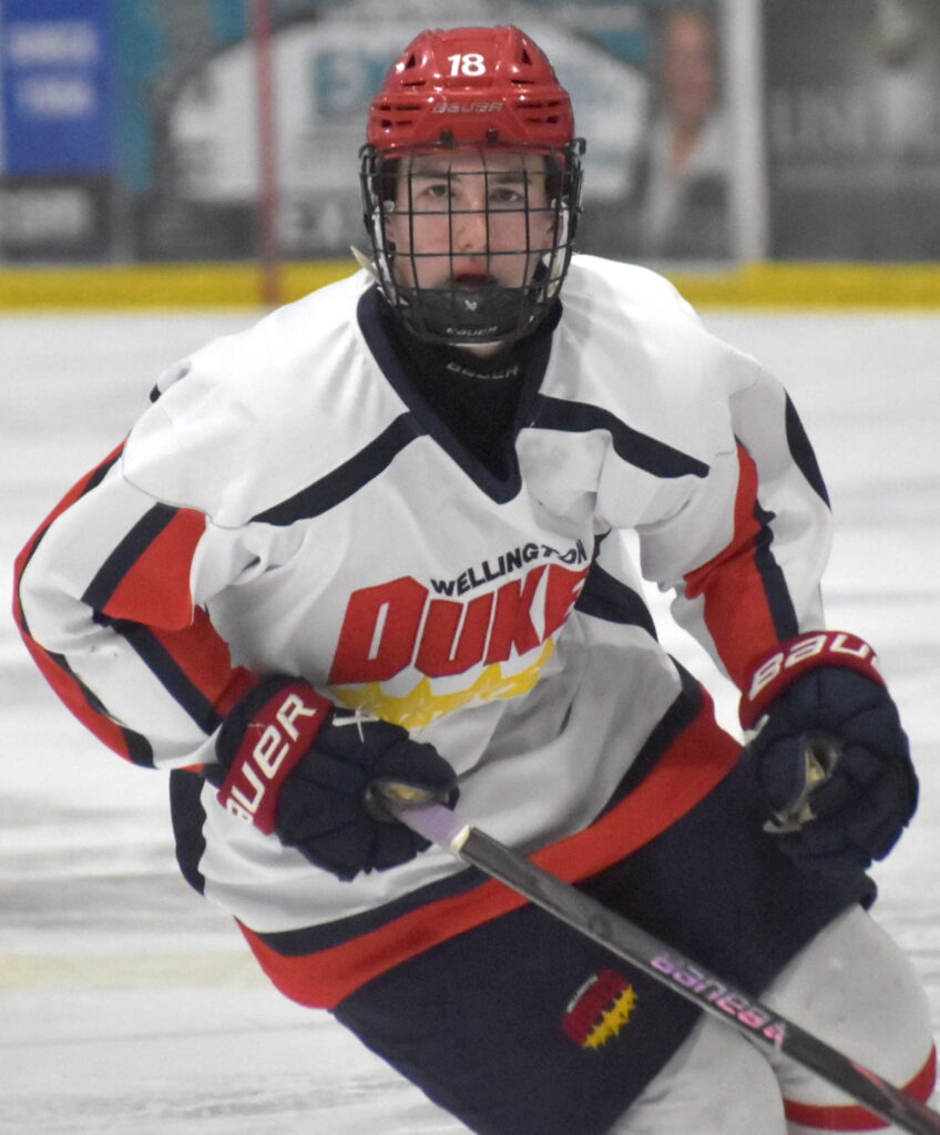 Cain Tucker scored the game winning goal Sunday night as his Dukes blanked the visiting Pickering Panthers 3-0 (Jason Parks/Gazette Staff)