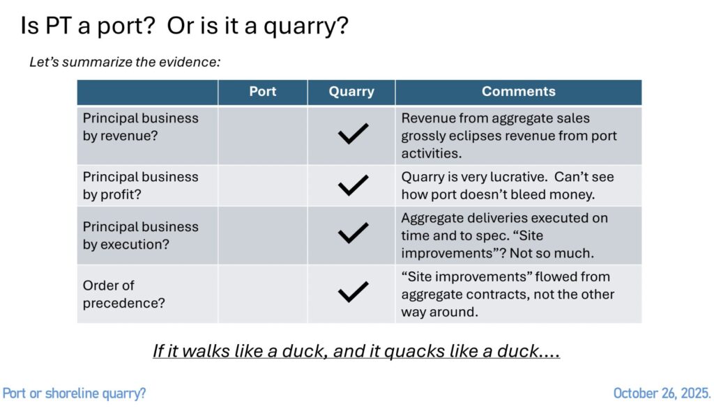 “We showed that the excavations over 8 years go far beyond port improvements. We also showed that the port side of its business is negligible.”