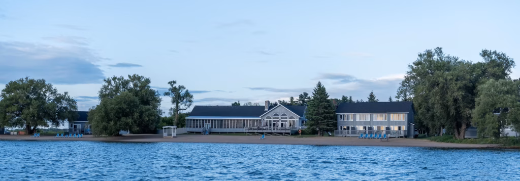 With 2000 feet of waterfront along West Lake overlooking Sandbanks Provincial Park, the resort is in a prime location. It has 74 guest rooms, 12 chalets, a tennis court, a beach, a pool, and a legendary restaurant, The Knoll.