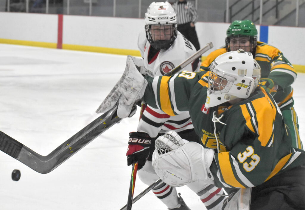 Mr. Lane was perfect in the third, stopping all 7 Amherstview volleys sent his way and Picton’s leading regular season goal scorer Luc Amat got his first of the series into a yawning Jets’ hanger with under two minutes left to play.