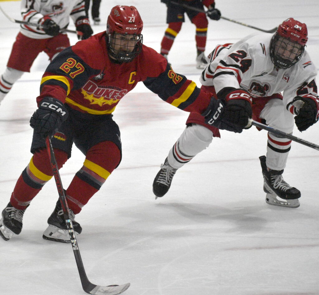 The Dukes (6-1-0, 12 points) kicked off their weekend Friday with a tough, penalty-filled loss against the Stoufville Spirit. A rookie coach might howl over the bewildering nature of some of the calls on Friday and allow his team to stew on what might have been if they received an even shake in the administration of hockey jurisprudence. That’s typically how junior hockey losing streaks are born.
