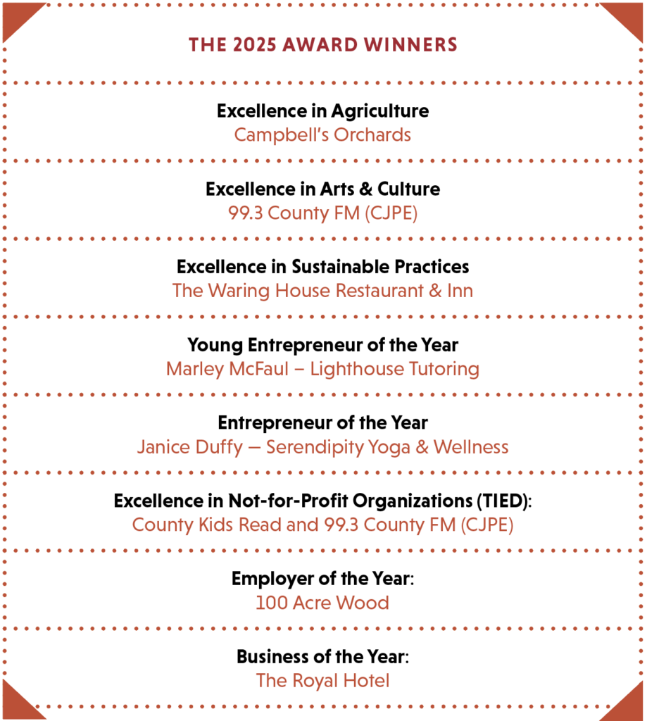 “Their success is a testament to the vital role businesses play in building a resilient and prosperous Prince Edward County.”